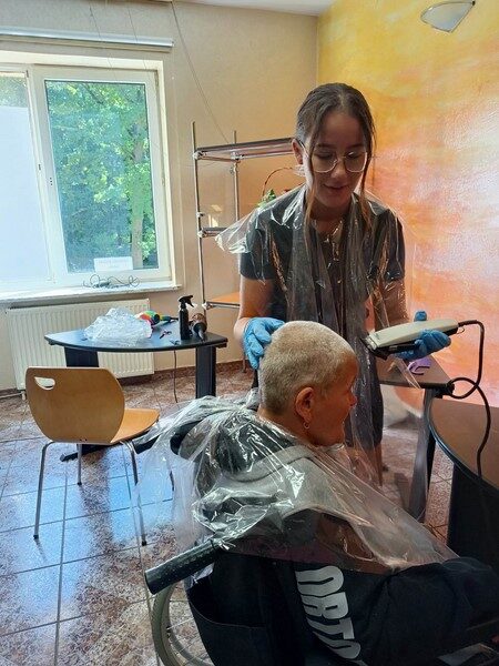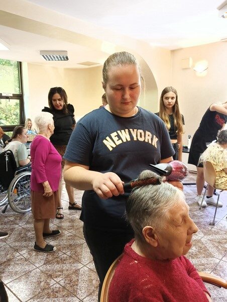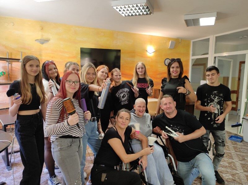Nasi fryzjerscy wolontariusze w dniu swojego święta odwiedzili podopiecznych zaprzyjaźnionego z naszą szkołą Domu Pomocy Społecznej w Zgierzu.