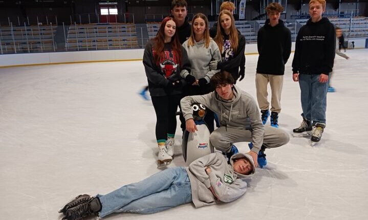 Uczniowie klas 2 TF i 3 TOF w ramach propagowania sportów zimowych wybrali się do zgierskiej hali MOSiR na lodowisko. Każdy jeździł tak, jak umiał, techniki jazdy można określić jako wybitnie „zindywidualizowane” .