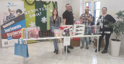 Kiermasze Świąteczne z udziałem firmy patronackiej Uni-Fryz oraz firmy Delia Cosmetics to nie tylko doskonała okazja do zakupu upominków świątecznych, ale także możliwość zapoznania się z wyjątkowym asortymentem dostosowanym do świątecznego okresu!  Uczniowie klas fryzjerskich mieli niepowtarzalną okazję porozmawiać z przedstawicielami firm i dowiedzieć się, jakie produkty do pielęgnacji i stylizacji są obecnie na topie w branży fryzjerskiej.  Dziękujemy naszej