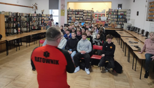 Uczniowie naszej szkoły mieli okazję uczestniczyć w warsztatach z pierwszej pomocy, które przeprowadzili ratownicy z Ochotniczego Centrum Ratownictwa w Zduńskiej Woli. Podczas spotkania młodzież zdobyła cenną wiedzę i umiejętności, które mogą uratować życie w sytuacjach kryzysowych. Serdecznie dziękujemy ratownikom za zaangażowanie i profesjonalizm! Mamy nadzieję, że zdobyta wiedza przyczyni się do większej troski o bezpieczeństwo w naszej szkole i w