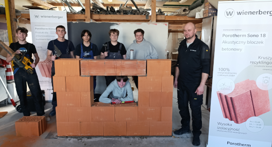 W środę 12 marca 2025 r. odbyło się szkolenie dotyczące wyrobów ceramicznych produkowanych przez firmę Wienerberger. W szkoleniu uczestniczyli uczniowie klas 2TBE i 3twz. Uczniowie dowiedzieli się czym jest nowoczesna ceramika łącząca właściwości komfortu, ekonomii- zapewniając elegancję przy zachowaniu cech bezpiecznego użytkowania. W części praktycznej uczniowie wykonali z elementów dostarczonych przez firmę Wienerberger ściankę – mur z otworem  z wykorzystaniem