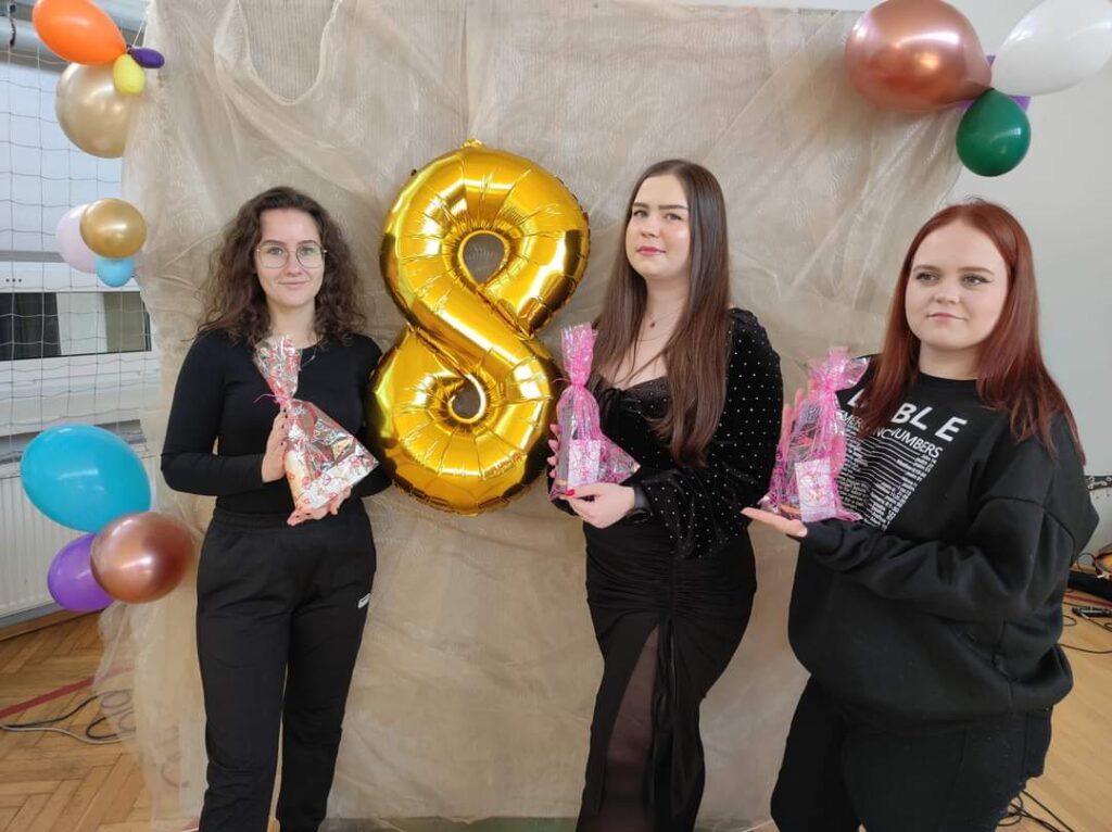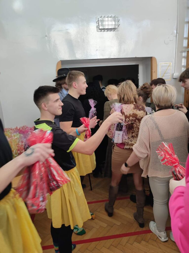 W tym wyjątkowym męska część naszej społeczności zadbała o wszystkie dziewczyny. Był program artystyczny – wiersze, piosenki a nawet “Jezioro Łabędzie” w wykonaniu uczniów klas piątych. Były także upominki przygotowane we współpracy z firmą patronacką Uni-Fryz Hurtownia Fryzjersko-Kosmetyczna. Były też serdeczne życzenia.