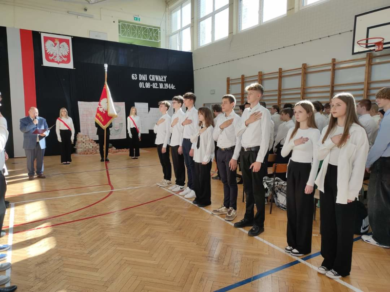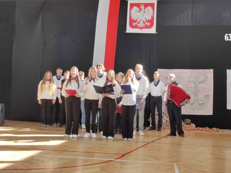 Uroczystość wzbogaciła inscenizacja słowno-muzyczna “63 Dni Chwały” z okazji 80. rocznicy Powstania Warszawskiego. Uczniowie zaprezentowali wiersze o tematyce powstańczej oraz zaśpiewali (nie)zakazane piosenki, takie jak “Siekiera, motyka”, “Pałacyk Michla” czy “Warszawskie dzieci”. Całość dopełniła dekoracja nawiązująca do tematyki powstańczej, z akcentem ruin muru oraz apaszkami noszonymi przez Powstańców.