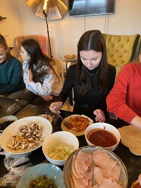 W piątkowe przedpołudnie klasa IV TL uczestniczyła w warsztatach przyrządzania Pizzy. Pomimo dokładnych instrukcji dotyczących wyrabiania i formowania ciasta przekazanych, przez szefa kuchni restauracji Kocham Jeść, własnoręczne wykonanie Pizzy okazało się być nie lada wyzwaniem. Ostatecznie wszyscy mieli możliwość posmakować swoich wyrobów. Była to kolejna okazja do wspólnego spędzenia czasu i pogłębienia integracji klasy.
