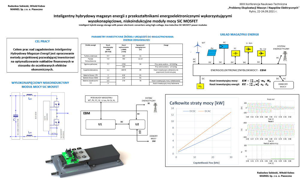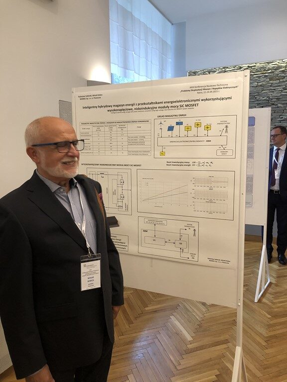 Na konferencji referat wygłosił dr inż. WITOLD KOBOS, nauczyciel przedmiotów zawodowych technikum elektromobilności w naszej szkole. Jego temat dotyczył nowoczesnych magazynów energii i nosił tytuł: “Inteligentny hybrydowy magazyn energii z przekształtnikami energoelektronicznymi wykorzystującymi wysokonapięciowe, niskoindukcyjne moduły mocy SiC MOSFET”