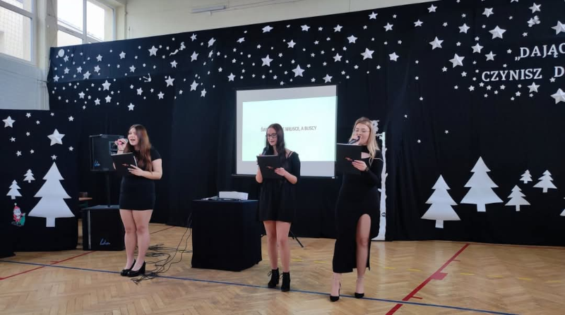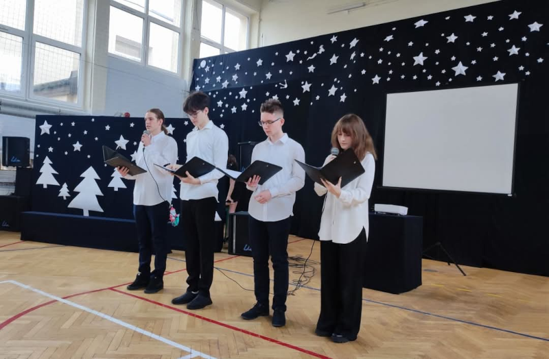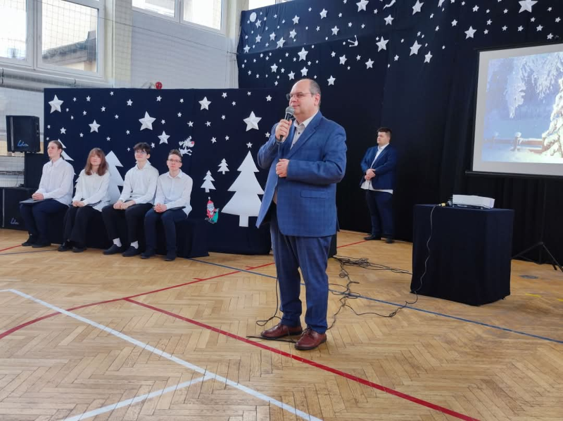 W świątecznym nastroju 20 grudnia 2024 r. w naszej szkole odbyła się uroczysta Wigilia . Młodzież wzięła udział w jasełkach, które przygotowali uczniowie klas pierwszych wraz z wychowawcami. Uroczystość została uświetniona przez uczennice klas piątych, które zaśpiewały piękne kolędy . Nie zabrakło wzruszeń, radosnego kolędowania i wspólnego dzielenia się świąteczną atmosferą. Wszyscy poczuli magię Świąt Bożego Narodzenia i w radosnym nastroju udali się na klasowe spotkania wigilijne.