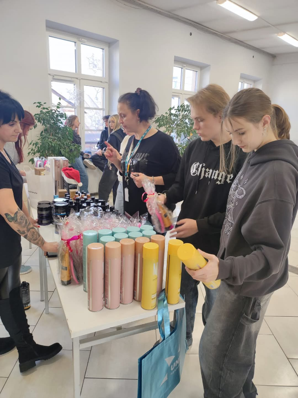 Uczniowie klas fryzjerskich mieli niepowtarzalną okazję porozmawiać z przedstawicielami firm i dowiedzieć się, jakie produkty do pielęgnacji i stylizacji są obecnie na topie w branży fryzjerskiej.