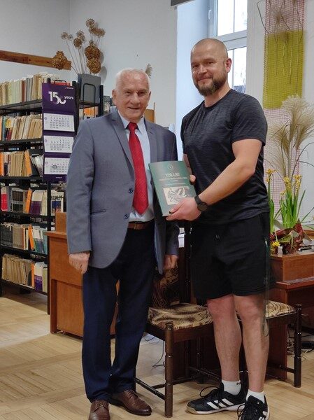 Pan Kazimierz zachwycił wszystkich obecnych doskonałą formą, charyzmą i niebywałym urokiem osobistym. Na koniec wspólnie spędzonego czasu nasz gość wręczył ,,ważnym osobom w jego życiu zawodowym” autorską książkę o historii TG ,,Sokół” w Zgierzu.