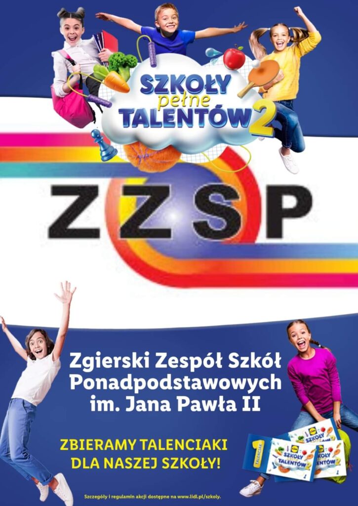 Nasza szkoła bierze udział w akcji “Lidl szkoły pełne talentów”. Robiąc zakupy w Lidlu możecie Nas wesprzeć. Szkoła może wygrać atrakcyjne wyposażenie. To takie proste: – Zrób zakupy za min. 50 zł w tym przynajmniej jedno warzywo lub 1 owoc. – Przy kasie odbierz kupon – TALENCIAKA. – Swoje TALENCIAKI możecie wrzucać do specjalnych pudełek, które znajdują się w szkole. – Talenciaki można również przekazać szkole wchodząc na stronę: https://szkoly.lidl.pl/Talenciaki/glowna – należy odszukać Technikum nr 2 im. Jana Pawła II w Zgierzu i zeskanować kod QR umieszczony na Talenciaku. – Każdy TALENCIAK, to szansa dla naszej szkoły na atrakcyjne nagrody, z których moglibyśmy korzystać podczas zajęć. Akcja trwa do 5 listopada br. Z góry dziękujemy za Wasze wsparcie.