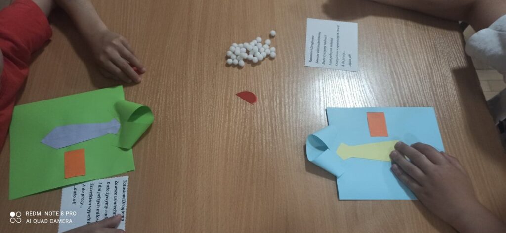 Dzieci ozdobiły wcześniej przygotowane przez swoich starszych kolegów laurki dla taty.