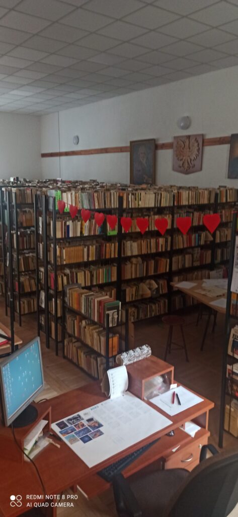 Na korytarzu przed biblioteką została wykonana tablica na temat poezji miłosnej oraz walentynek. Przygotowano też ekspozycję książek tematycznie związanych z tym świętem.