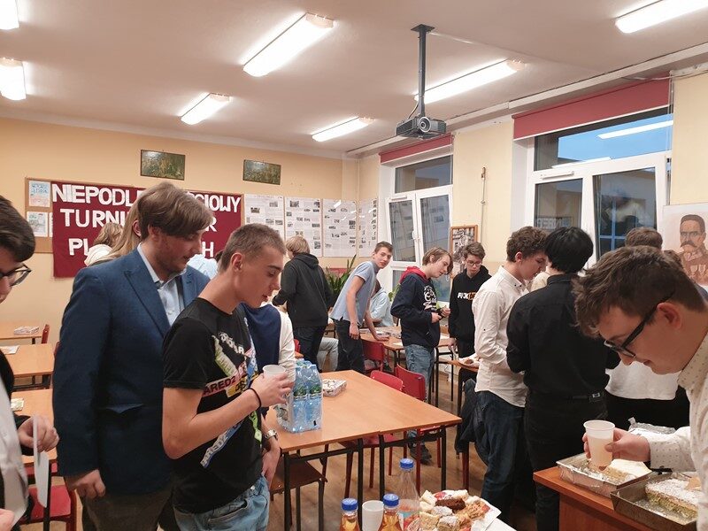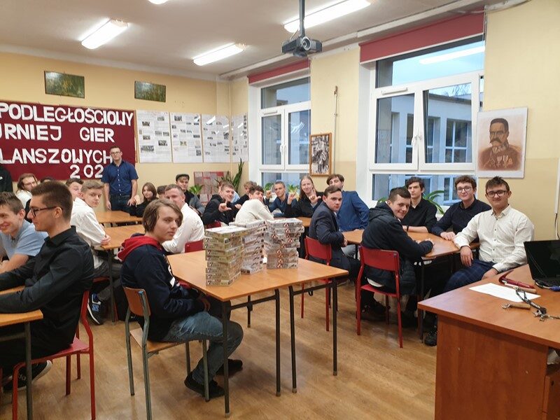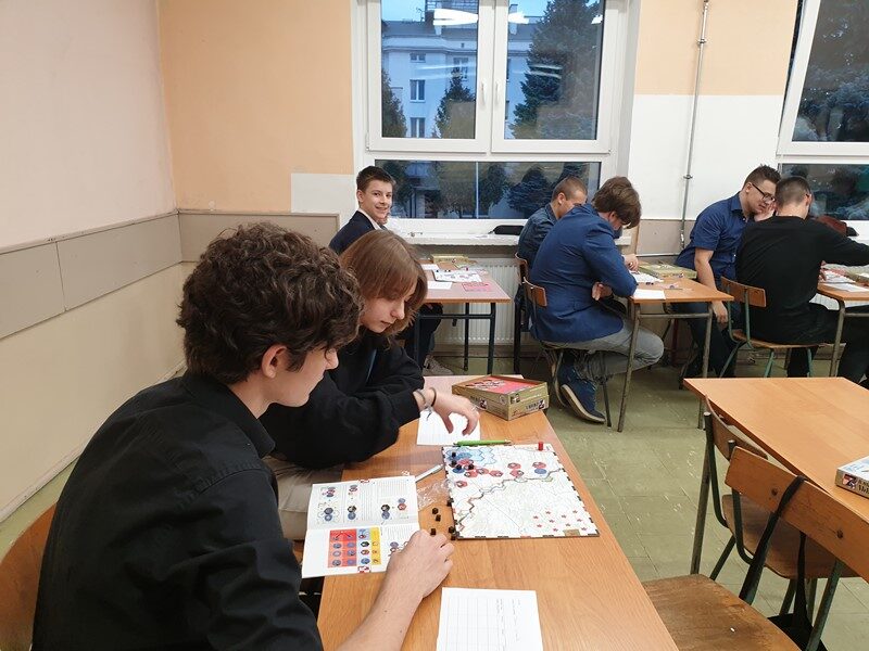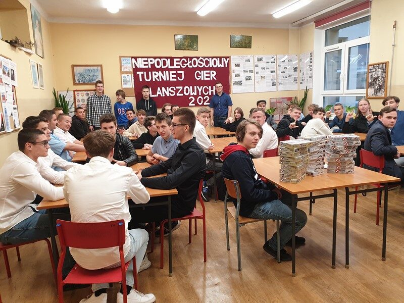 W późne piątkowe popołudnie w planszowych zmaganiach lotniczych wzięło udział 60 uczniów. Rywalizowali oni ze sobą w grach wydanych przez Instytut Pamięci Narodowej takich jak: 303 – Bitwa o Anglię, 111 – Alarm dla Warszawy,7 – Obrona Lwowa oraz współpracowali, aby odzyskać niepodległość w grze kooperacyjnej „Niepodległa”. W tej trudnej grze jak zwykle niezawodna i niezastąpiona jest drużyna z klasy 3TI w składzie: