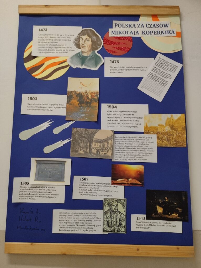Uczniowie naszej szkoły pod opieką p. E. Marczewskiej przygotowali galerię plakatów dotyczącą Mikołaja Kopernika.