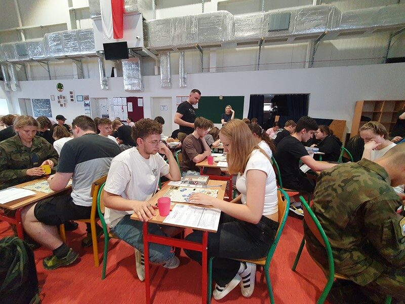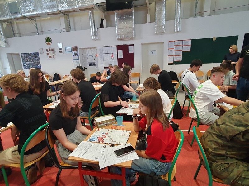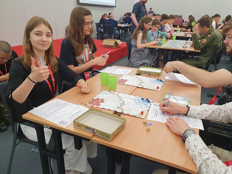 Kamila Andrzejczak 4TAP grała w ” 7 – W obronie Lwowa”, Ksawery Kowalczyk 4TAP w ” 303 – Bitwa o Anglię” i Dawid Tomicki 5BFp w “111 – Alarm dla Warszawy”. Zwycięzcy rozgrywek regionalnych z całego kraju spotkali się i rywalizowali ze sobą podczas finału, który miał miejsce w Poznaniu w ramach Kongresu Pamięci Narodowej. Trzydniowy harmonogram rozgrywek był napięty, ale mimo to uczestnicy Olimpiady i nasza drużyna, wraz ze swoim nauczycielem historii panią Beatą Rybarczyk, znaleźli czas na wspólną integrację i zwiedzanie Poznania.