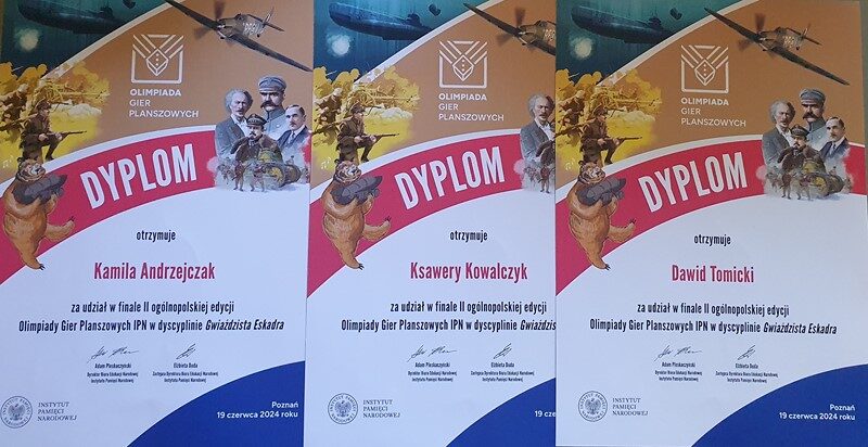 Nasze “Zgierskie Orły” zajęły IV miejsce w finale ogólnopolskim II Olimpiady Gier Planszowych Instytutu Pamięci Narodowej. Tak, jak w roku ubiegłym, reprezentowali oni region łódzki w Gwiaździstej Eskadrze, czyli podniebnych zmaganiach lotniczych na planszy.