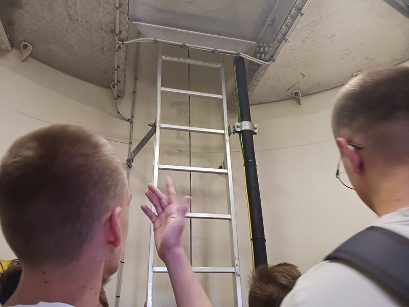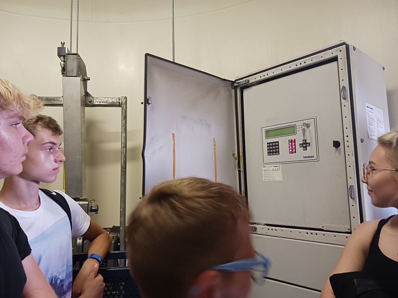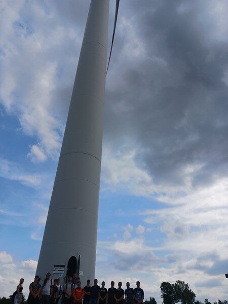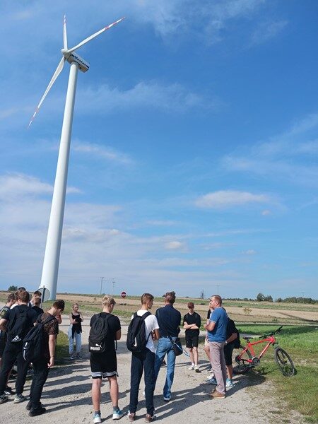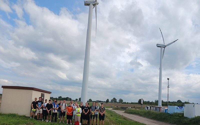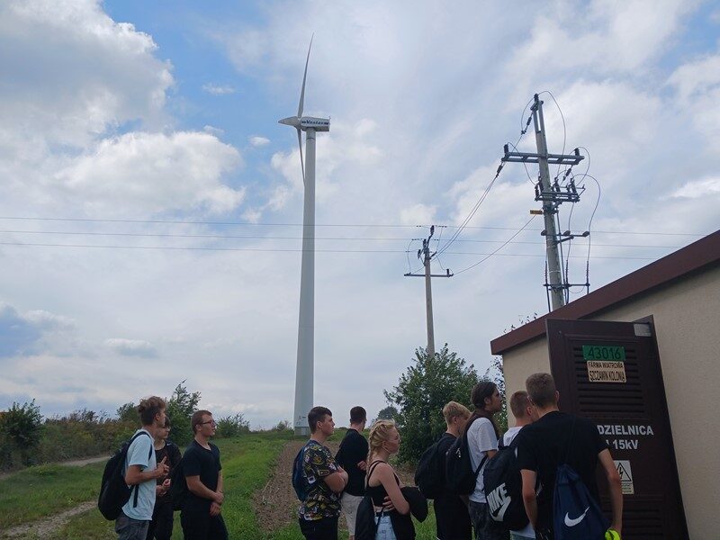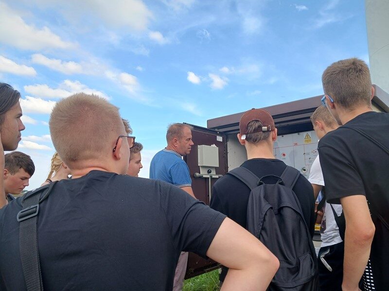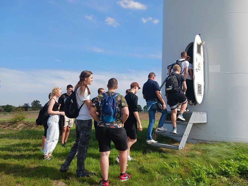 Młodzież miała możliwość poznać i zobaczyć w praktyce mechanizmy i procesy pozyskiwania energii oraz zapoznać się z wnętrzem i wyposażeniem turbiny wiatrowej. Była to również okazja wejścia do wnętrza wieży. Oprowadzający po terenie farmy pan Marian Jóźwiak zapoznał zwiedzających z technicznymi aspektami produkcji energii z wiatru.
