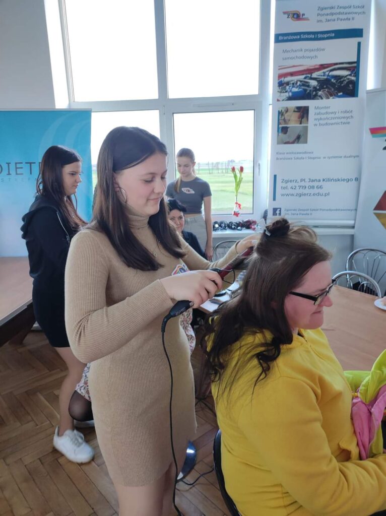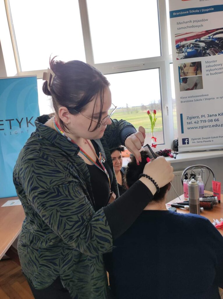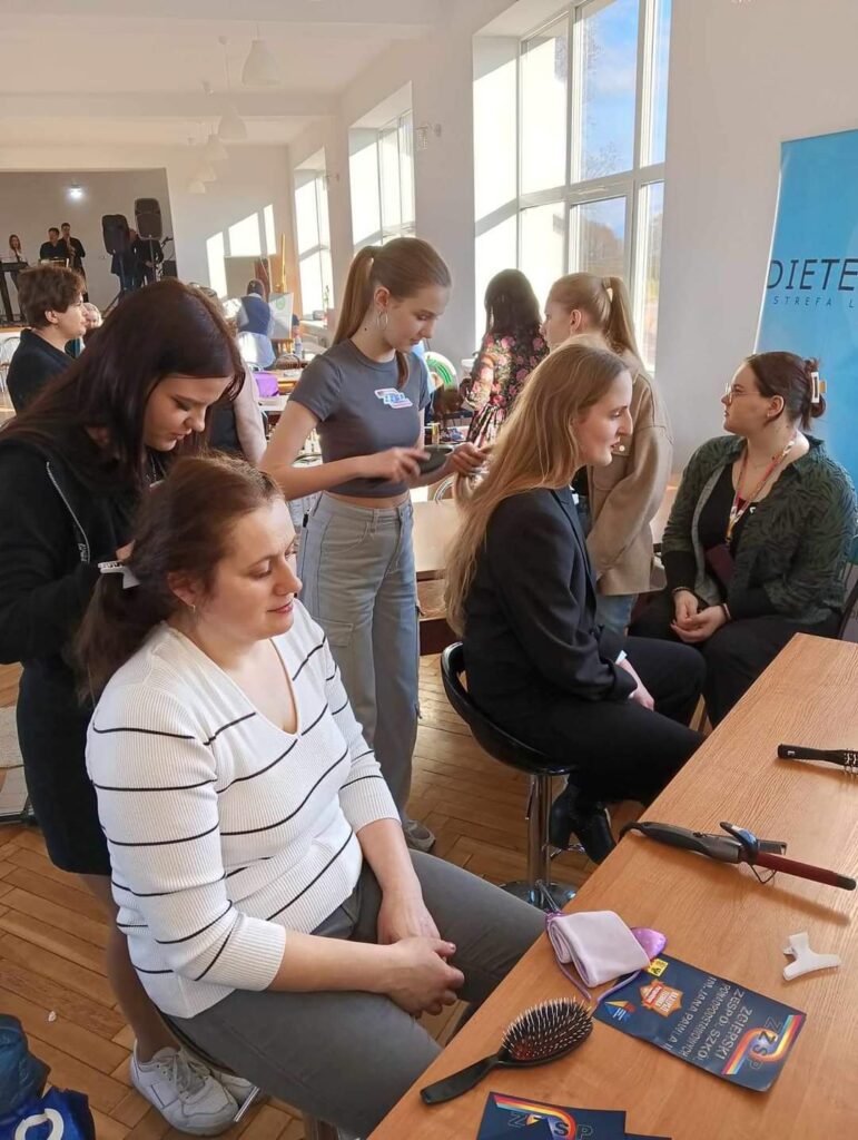 Panie uczestniczące w tym wydarzeniu miały do dyspozycji szeroki wachlarz usług kosmetycznych, trychologicznych i fryzjerskich. Nasze uczennice miały wiele ciekawych wyzwań zawodowych.