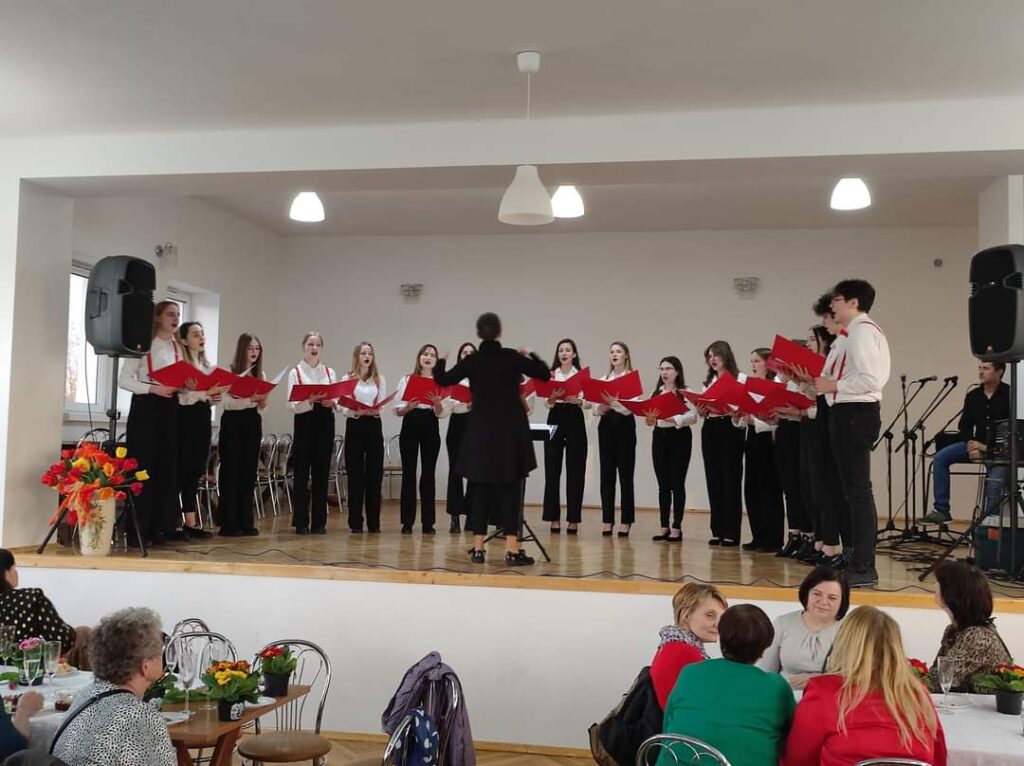 Sobotnie popołudnie okazało się bardzo pracowite, a przy okazji bogate w wydarzenia artystyczne. Stylizacje fryzur wykonywane przez uczennice klas fryzjerskich powstawały przy dźwiękach muzyki rozrywkowej oraz utworach wykonywanych przez Zgierski Chór Kameralny. Podziwialiśmy talent wokalny wszystkich chórzystów, szczególnie zaś naszej absolwentki Karoliny Dębowskiej oraz ucznia klasy 3 twz -Maćka Łapaja.
