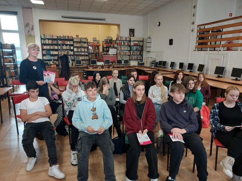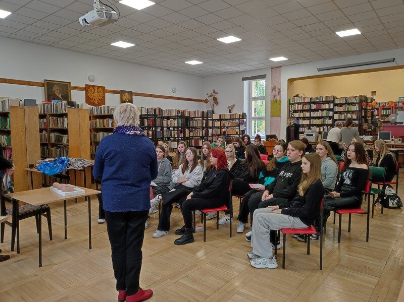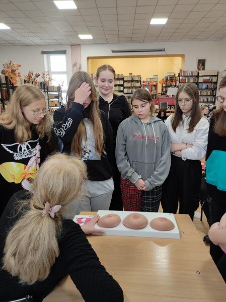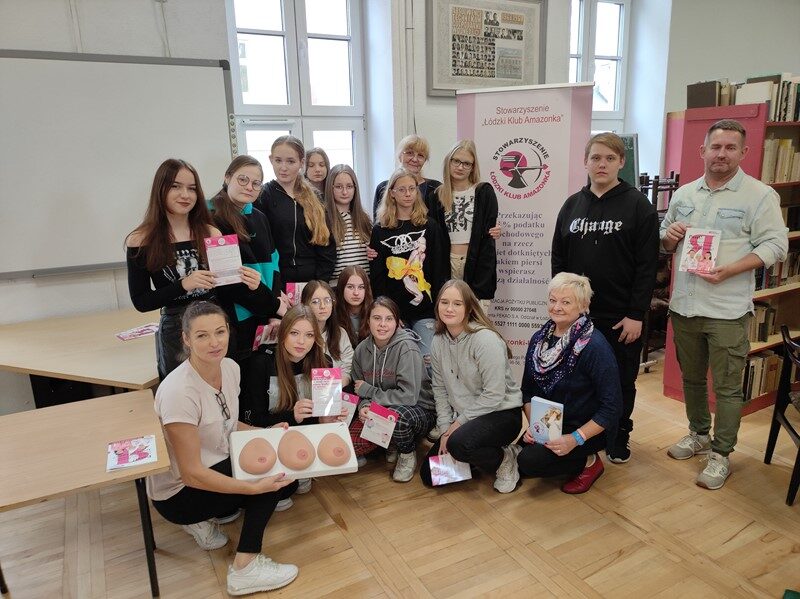 Od wielu lat odwiedzają nas wolontariuszki Stowarzyszenie Łódzki Klub Amazonka, aby szkolić młodzież z zakresu samobadania piersi oraz zachęcać do dbania o zdrowie swoje i swoich bliskich. Serdecznie dziękujemy zaprzyjaźnionym z naszą szkołą Paniom -Jadwidze i Teresce za ogrom wiedzy i mnóstwo pozytywnej energii.