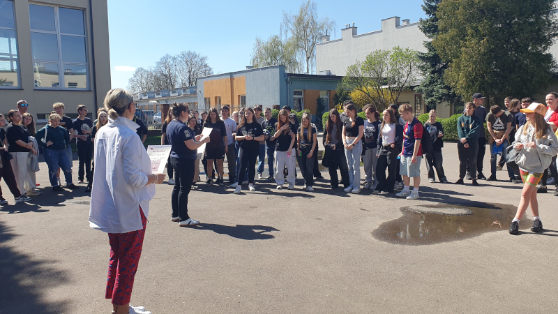 W ostatnim etapie realizacji projektu uczniowie zostali zobligowani do zorganizowania wydarzenia w przestrzeni publicznej. Podjęli się organizacji gry miejskiej „Nasi bohaterowie – zgierzanie w XX wieku” i zaprosili do udziału w niej uczniów zgierskich szkół podstawowych i ponadpodstawowych. W wydarzeniu wzięło udział 91 uczniów wraz z nauczycielami.