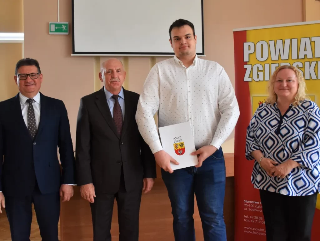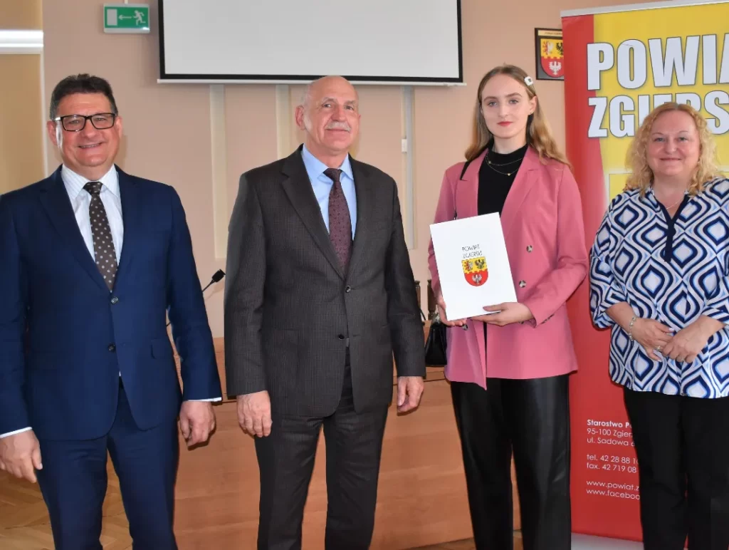 W Starostwie Powiatowym w Zgierzu absolwenci szkół ponadpodstawowych odebrali stypendia. Wśród nich – Karolina Dębowska i Krzysztof Rybak – nasi tegoroczni maturzyści. Nagrodzeni zostali Stypendium “Nasz Prymus “. Otrzymali je z rąk Starosty Zgierskiego Bogdana Jaroty oraz członków Zarządu Powiatu Zgierskiego Katarzyny Łebedowskiej i Wojciecha Brzeskiego.