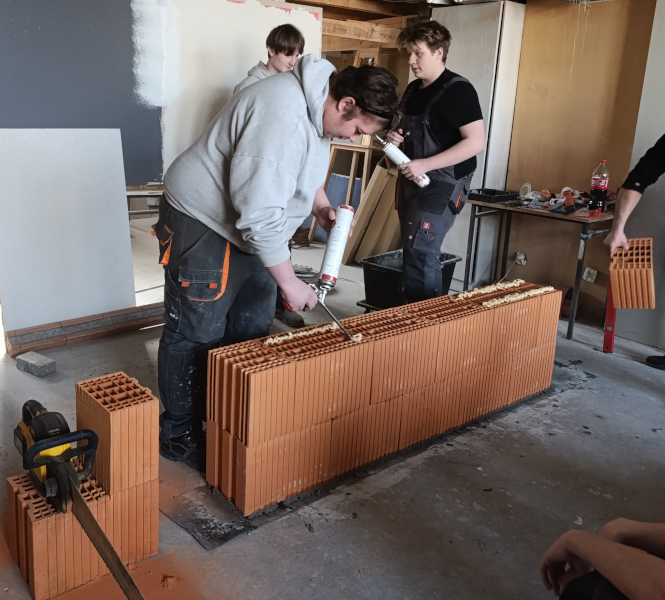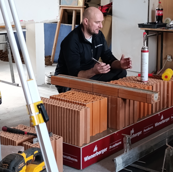 W części praktycznej uczniowie wykonali z elementów dostarczonych przez firmę Wienerberger ściankę – mur z otworem z wykorzystaniem systemowego nadproża. Dziękujemy panu Patrycjuszowi za przeprowadzenie szkolenia.