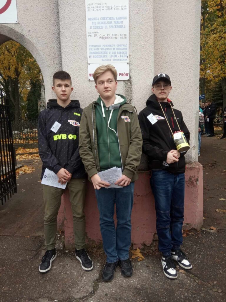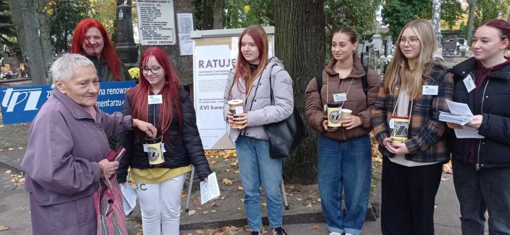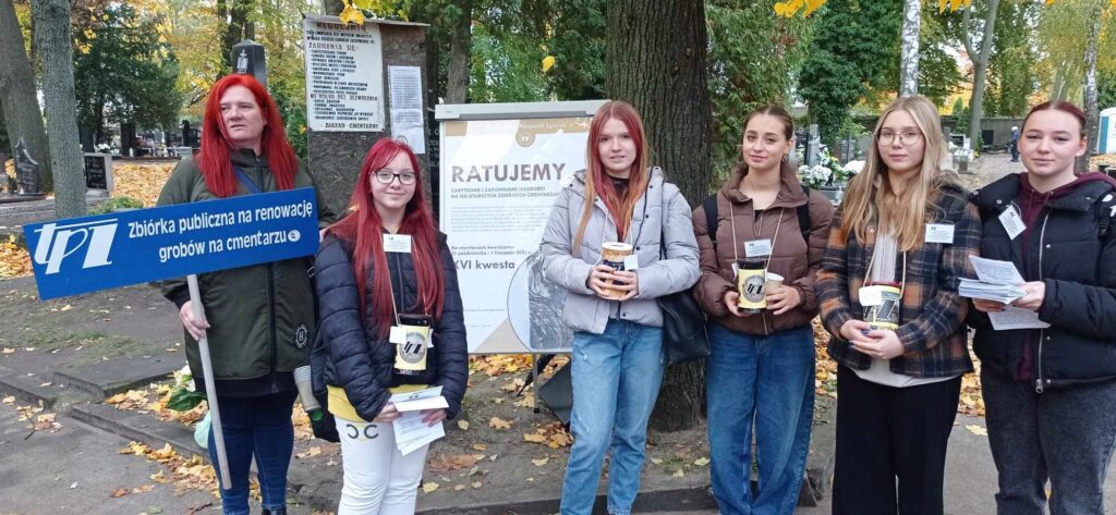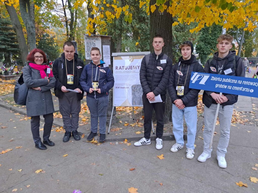 Po raz kolejny uczniowie klas drugich i trzecich technikum naszej szkoły pod opieką Pani Joanny Cwondy-Kustosik, Pani Bożeny Michałowicz i Pani Joanny Wojciechowskiej wzięli udział w kweście na rzecz renowacji grobów zasłużonych zgierzan na zgierskim cmentarzu przy ulicy Spacerowej.
