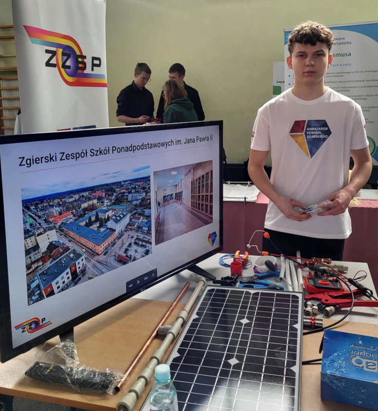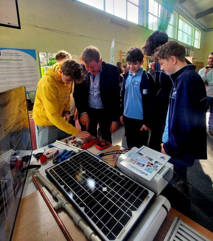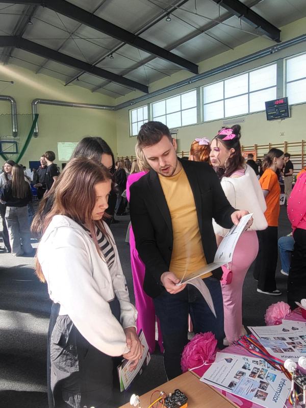 W Szkole Podstawowej nr 4 w Aleksandrowie Łódzkim odbyły się po raz pierwszy Gminne Targi Edukacyjne. Nie zabrakło i nas. Przedstawiliśmy uczniom klas ósmych ze wszystkich szkół podstawowych Gminy Aleksandrów Ł. naszą ofertę edukacyjną na rok szkolny 2025/2026, opowiedzieliśmy o atmosferze w szkole i o tym, co nas wyróżnia, rozdawaliśmy informatory, ulotki i smyczki. Nasze stanowisko było niezwykle barwne i wzbudzało duże zainteresowanie. Nauczyciele wraz z uczniami pokazali praktyczne możliwości w zakresie urządzeń energetyki odnawialnej, systemów robotyki oraz programowania. Nie mogło zabraknąć również pokazu umiejętności fryzjerskich oraz profesjonalnych stylizacji wizażowych.