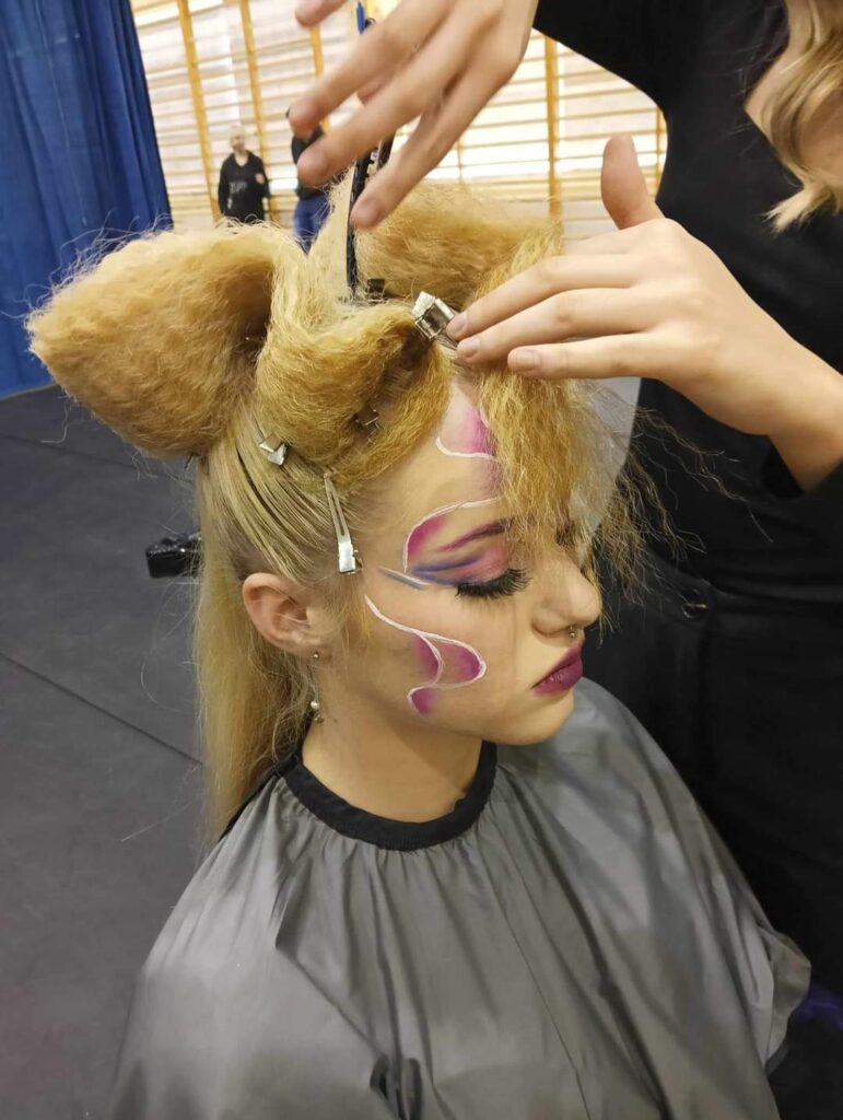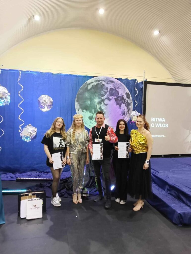 Dwudziestu pięciu uczestników walczyło o puchar Starosty Tomaszowa Mazowieckiego. Naszą ekipę fryzjerską reprezentowały Natalia Marciniak i Alicja Szeluga uczennice klasy IV TOF a ich modelkami były Veronika i Natalia uczennice klas fryzjerskich. Stylizacje były na wysokim poziomie sztuki fryzjerskiej, dopełnione tematycznymi makijażami i kreacjami. Cała ekipa fryzjerska była bardzo zaangażowana w konkurs a nad wszystkim czuwał mistrz fryzjerstwa Przemysław Wyrwas. Serdecznie gratulujemy.
