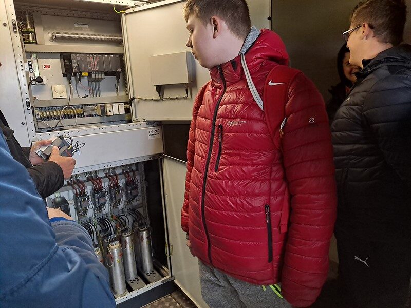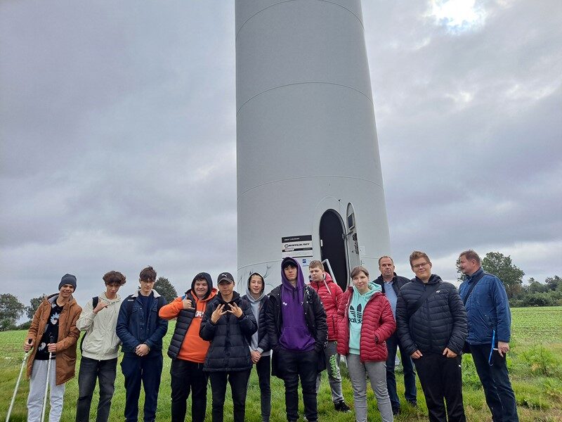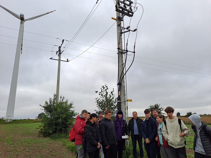 Pod asystą właściciela turbin uczniowie mogli wejść do wnętrza wieży i zobaczyć wszystkie urządzenia mierzące parametry pracy wiatraka. Pan M. Jóźwiak przedstawił również aspekty ekonomiczne tego przedsięwzięcia.