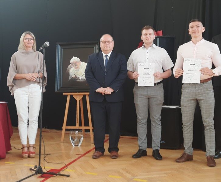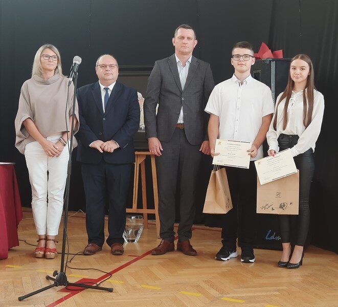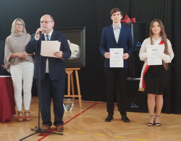 Uczniowie o najwyższej średniej podczas uroczystego apelu odebrali stypendia finansowe lub rzeczowe ufundowane przez firmy patronackie: Geis, Atlas oraz General IT.
