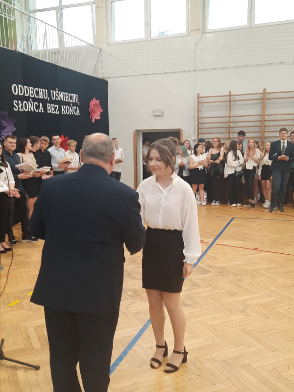 Uczniowie naszej szkoły w czasie uroczystego apelu odebrali świadectwa z wyróżnieniem, nagrody książkowe i rzeczowe za wzorowe zachowanie, bardzo dobre wyniki w nauce, za liczne osiągnięcia w konkursach oraz zaangażowanie w pracę na rzecz szkoły. Gratulujemy licznych sukcesów