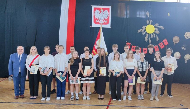 Uczniowie naszej szkoły w czasie uroczystego apelu odebrali świadectwa z wyróżnieniem, nagrody książkowe i rzeczowe za wzorowe zachowanie, bardzo dobre wyniki w nauce, za liczne osiągnięcia w konkursach oraz zaangażowanie w wolontariat i pracę na rzecz szkoły.