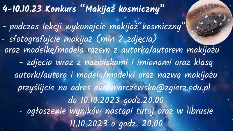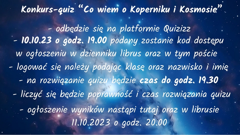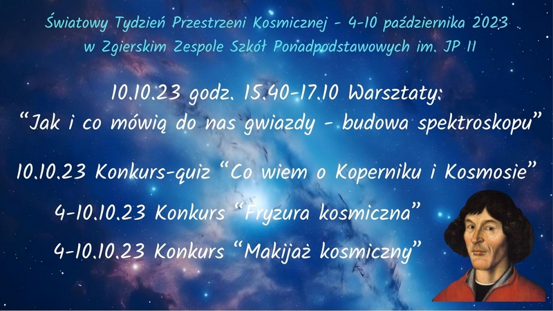 W dniach 4-10.X.2023 będzie się w naszej szkole działo. Na wielu lekcjach będzie poruszana tematyka kosmiczna.