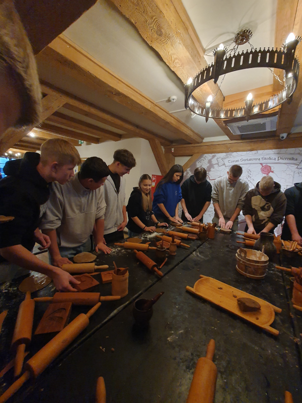 Dalsza część wycieczki to zwiedzanie Starego Miasta w Toruniu i toruńskiego jarmarku bożonarodzeniowego. Będąc w Toruniu obowiązkowym punktem jest  wizyta w Żywym Muzeum Piernika, które już z ulicy przyciąga  aromatycznym zapachem korzennych przypraw. Wspólne wyrabianie i pieczenie pierników sprzyjało  integracji.