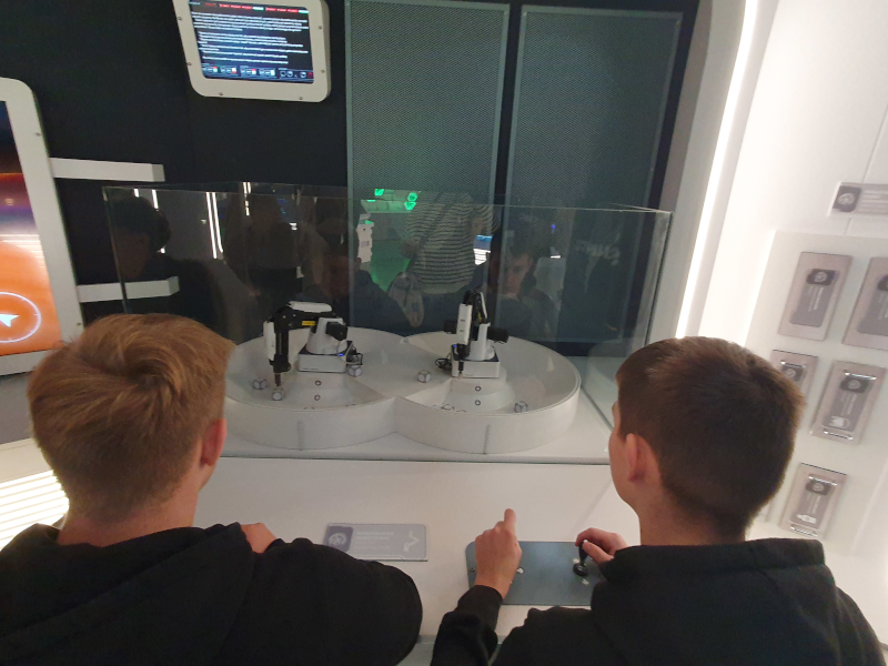 A na koniec seans filmowy „Wirująca Ziemia” i interaktywne poznawanie przestrzeni kosmicznej z Bazy Mars w toruńskim Planetarium. Do ich zadań należało wykonanie określonych czynności aby przeżyć poza Ziemią.