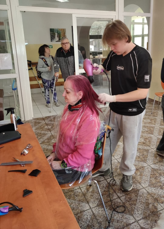 Uczniowie klas fryzjerskich ponownie odwiedzili zaprzyjaźniony Dom Pomocy Społecznej w Zgierzu. Jak zawsze nie zabrakło chętnych do skorzystania z usług – były strzyżenia, stylizacje fryzur, porady, a także rozmowy nie tylko o fryzurach. Wszystko odbywało się w przemiłej atmosferze, pełnej uśmiechu, serdeczności i wzajemnego szacunku – dzięki mieszkańcom i pracownikom domu.
