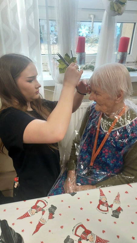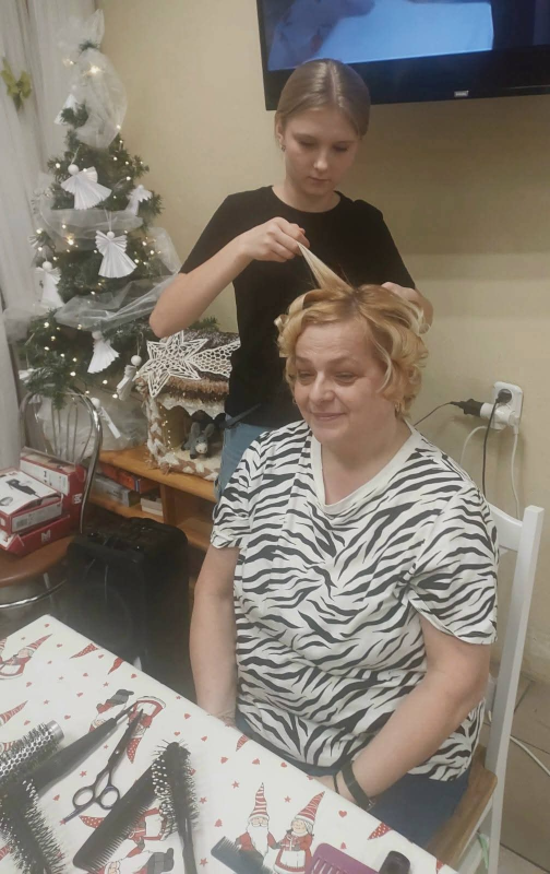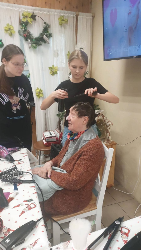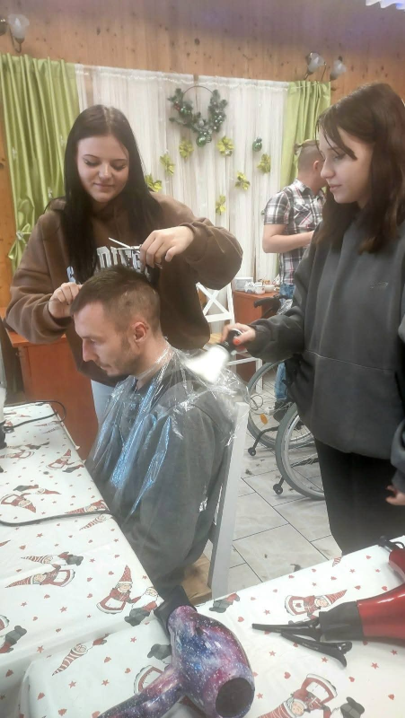 Na zaproszenie Powiatu Zgierskiego odwiedzili Dom Pomocy Społecznej w Ozorkowie, gdzie mieszkańcy mogli skorzystać z bezpłatnych usług fryzjerskich, takich jak strzyżenie, modelowanie i stylizacja fryzur.