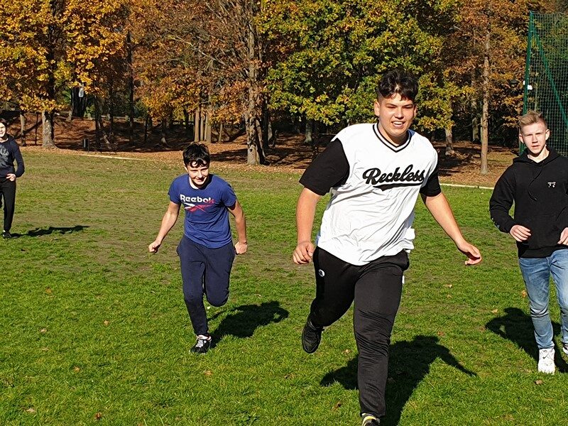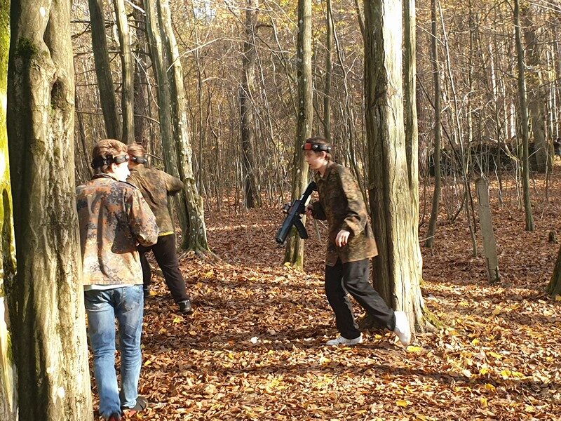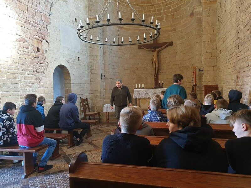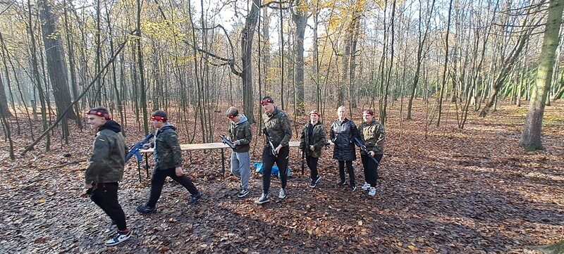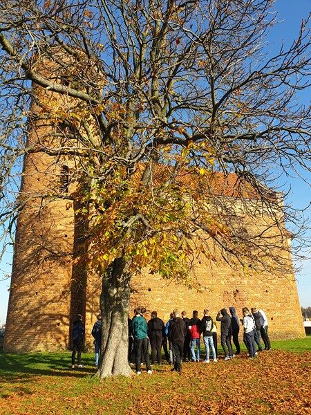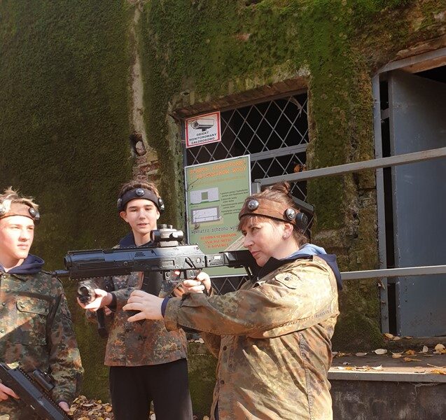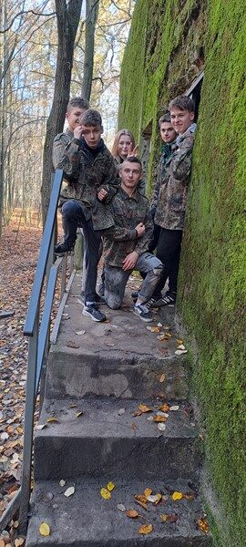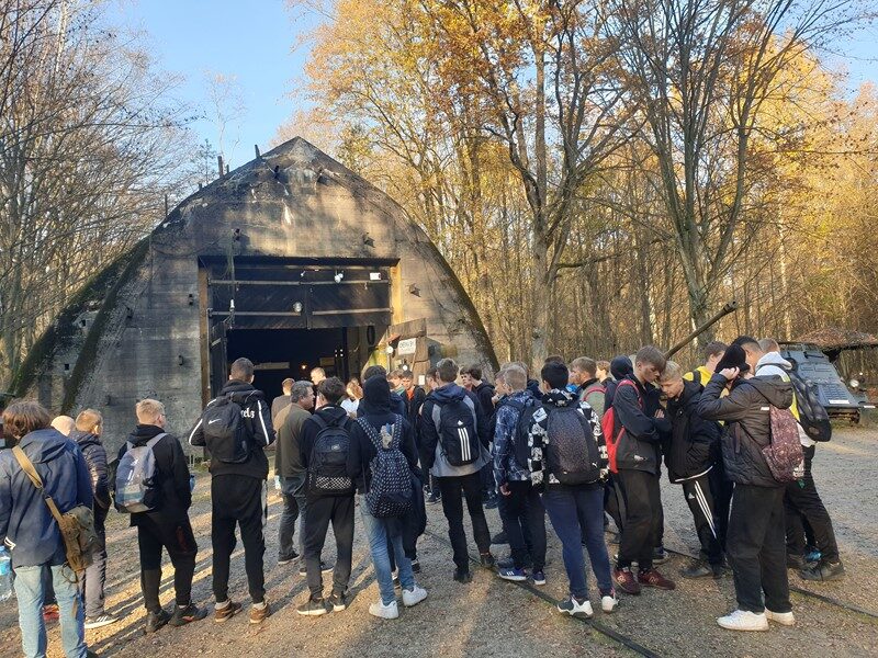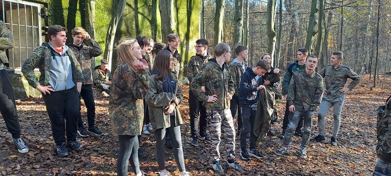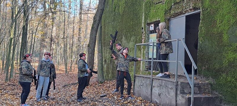 Przy pięknej pogodzie uczniowie grali w piłkę nożną i koszykówkę. Kolejnymi punktami na trasie wycieczki było obejrzenie i poznanie historii kościoła św. Idziego oraz ruin zamku obronnego z czasów Kazimierza Wielkiego w Inowłodzu. Niezwykle interesujące okazało się zwiedzanie kompleksu schronów kolejowych w Konewce z czasów II wojny światowej, militaria, a także wędrówka podziemnymi kanałami. Największą atrakcją była jednak gra Laser Tag, która wyzwoliła w uczestnikach niespotykane pokłady energii, zaangażowania i współpracy w drużynach. Nie zabrakło czasu na wspólne grillowanie i rozmowy. A na zakończenie spacer po malowniczej miejscowości Spała – pozostałości ruin pałacu carskiego, na których stoi wąskotorowa lokomotywa.