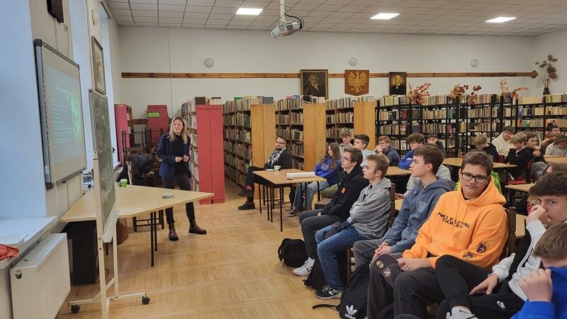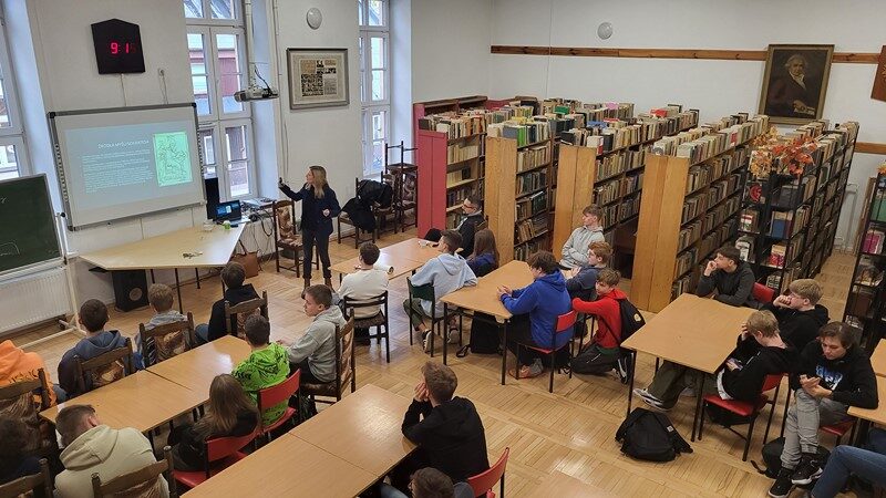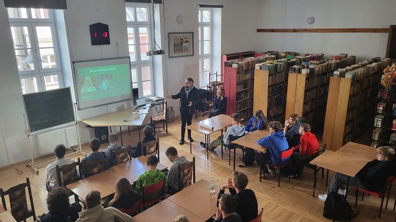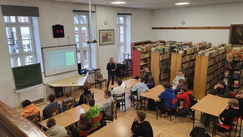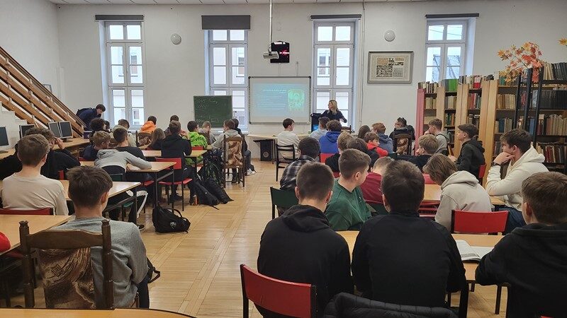 Poprowadziła wykład pt.: „O czym wie Sokrates, skoro nic nie wie?” dla uczniów klasy 1IT i 1PRT. Pani doktor przedstawiła źródła myśli Sokratejskiej, nawiązania do współczesności. Opowiedziała, czym się właściwie wyróżnia ten starożytny myśliciel i że tak naprawdę słowa słynnego i powtarzanego cytatu filozofa nie brzmiały dosłownie tak, jak to cytujemy dzisiaj. Filozof głosił tak: „Wróciwszy do domu zacząłem miarkować, że od tego człowieka jestem mądrzejszy. Bo z nas dwóch żaden, zdaje się, nie wie o tym, co piękne i dobre, ale jemu się zdaje, że coś wie, choć nic nie wie, a ja, jak nic nie wiem, tak mi się nawet nie zdaje”.